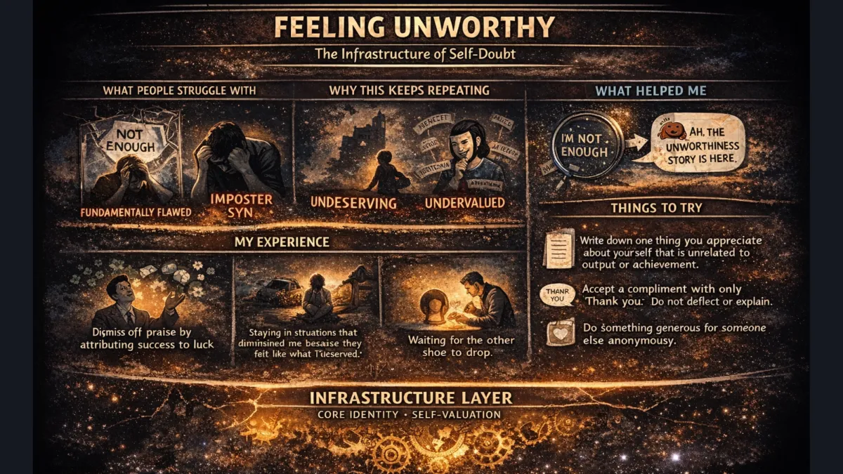 Noticing the feeling as a familiar visitor, not a truth. Saying "Ah, the unworthiness story is here."