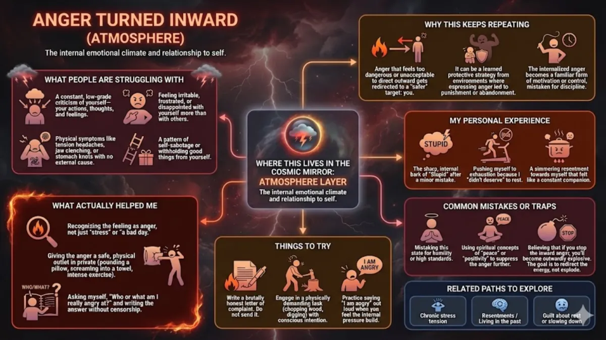 Anger that feels too dangerous or unacceptable to direct outward gets redirected to a "safer" target: you.