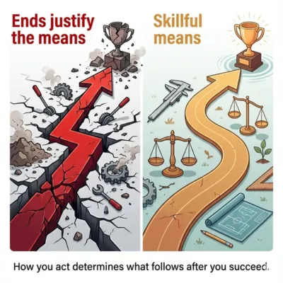 Skillful means says the how matters because methods shape outcomes over time. The goal is still effectiveness, but actions are chosen to minimize unnecessary damage, resistance, and blowback. It’s not moral softness. It’s strategic intelligence.